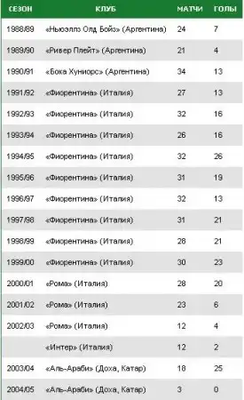 Лучший бомбардир в истории Фиорентины - 182 гола.