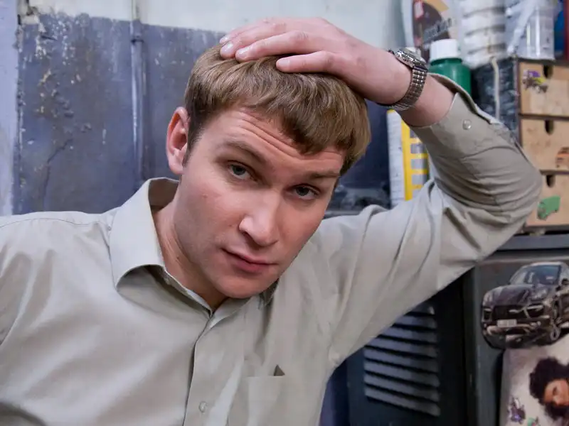 Друг Коляна. Работает в автосервисе. Очень шустрый и наглый, все время пытается замутить какие-то дела. Постоянно рвется в драку по любому поводу, за что часто огребает. Любит всех подкалывать и разводить. Пытается сдвинуть Коляна с пути добра, потому что считает, что по этому пути ходят только слабаки, но уж никак не реальные пацаны. Несмотря на неказистую внешность, очень нравится девушкам. За что тоже часто огребает - от их парней.
