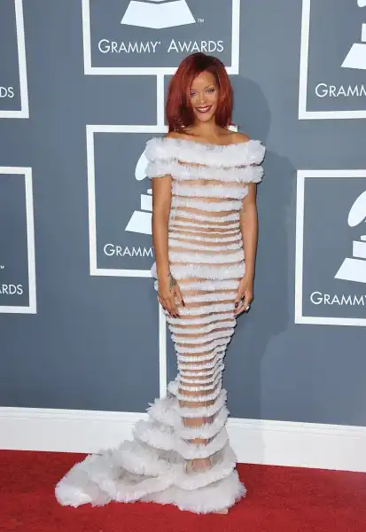 Вторая - это Аврил Лавин как бэ. А у Рианы на тот момент болело горло, и вообще было неизвестно появится она на церемонии или нет. Сами попробуйте с больным горлом попеть, тоже плохо получится, а она всеравно вышла:)