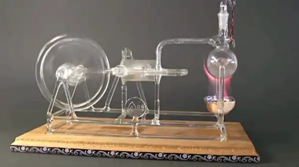 Чешский стеклодув собрал действующую модель парового двигателя Стефенсона из стекла.