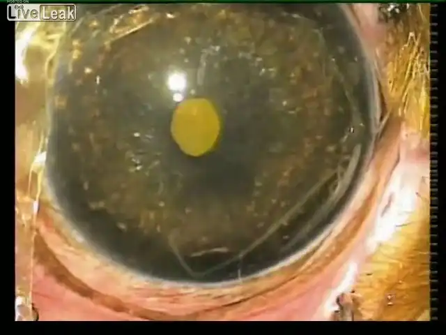 На этот раз не люди, а щенок. У него из глаза удаляют паразитического червя Angiostrongylus Nematode.