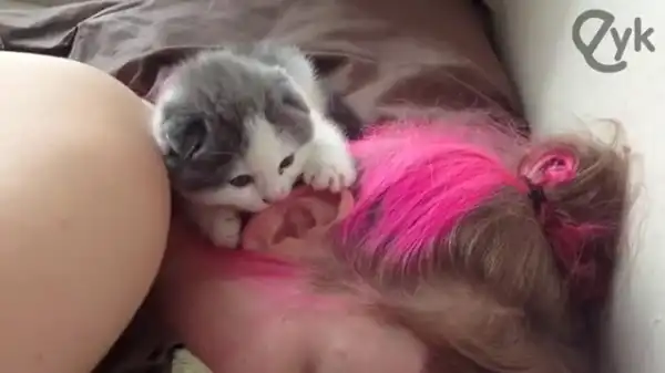 А котик ей: "Отстаань! Дай поспааааать!" ^_^