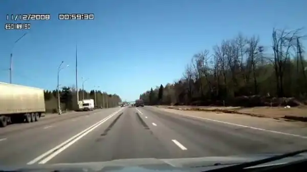 Оператор отворачивается заснять что происходит в стороне, где жахнуло- оттуда машина сдает задом.
