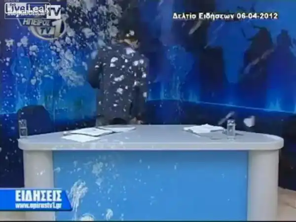 В Греции прямо на телестудию явились протестанты, которые забросали ведущего яйцами.