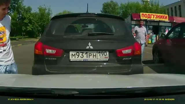 В очередной раз убеждаюсь, что видеорегистратор в автомобиле спасает от неприятностей. Водитель Mitsubishi специально сдал назад и хотел заработать денег, но, видимо, он не знал о существовании видеорегистраторов :)