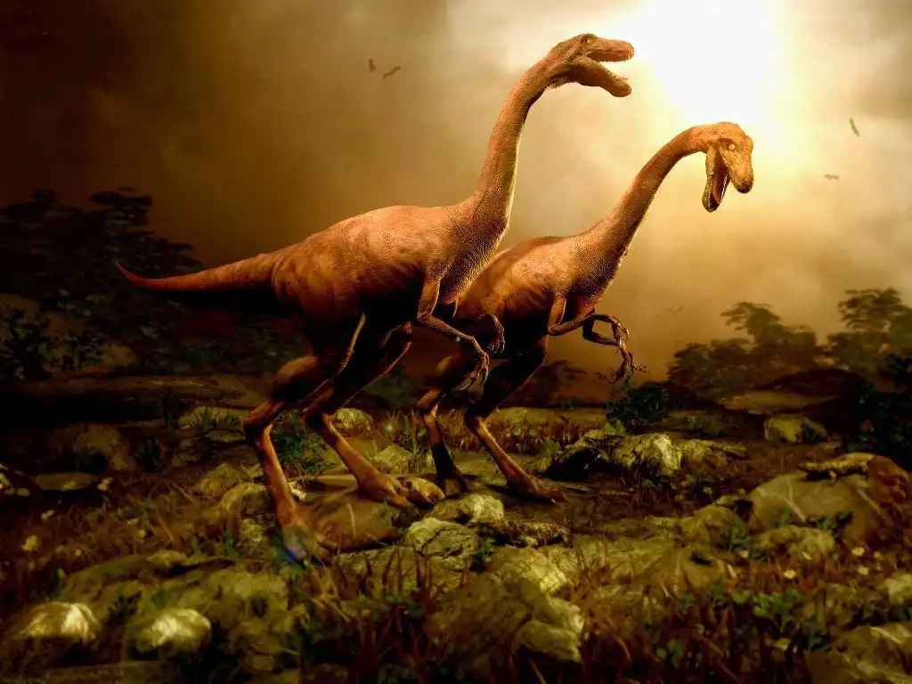 Однако еще в XIX веке некоторые палеонтологи заметили, что задние лапы динозавров почти идентичны птичьим, кости их пустотелы, они поставлены вертикально, а бедро имеет медиальную головку. И еще. Там, где обнаружены следы задних лап того же тарбозавра, нет следов хвоста, хотя если он волочился по земле, то следы неизбежно должны были остаться. Все это, в конце концов, навело на мысль о том, что животные эти передвигались подобно страусу, держа туловище горизонтально. Хвост же использовался как противовес тяжелой передней части туловища и оставался на весу. Теперь в науке доминирует мнение о том, что динозавр по своему строению и биомеханическому типу есть нечто среднее между своими ближайшими родственниками - крокодилами - и птицами, так что в современных музейных экспозициях скелеты этих ящеров ставят "по-страусиному", горизонтально.