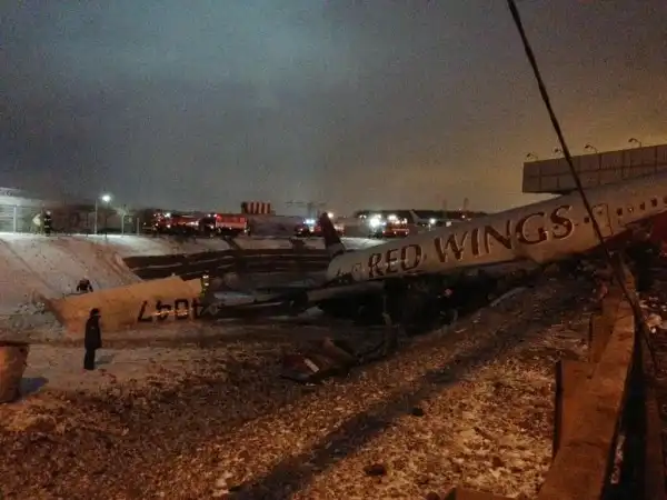 Самолет авиакомпании Red Wings совершил жесткую посадку в московском аэропорту "Внуково" вечером 29 декабря. Около 16.35 лайнер при посадке выехал за пределы взлетно-посадочной полосы, после чего загорелся. Из-за того, что самолет выехал за пределы ВПП, движение по Киевскому шоссе оказалось серьезно затруднено, на дороге образовались огромные пробки.