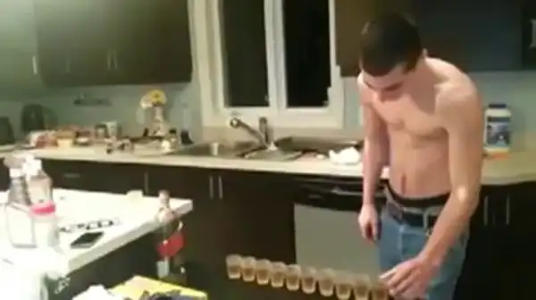 Бесстрашный парень выпивает 10 рюмок вискаря подряд, на чем его день и заканчивается