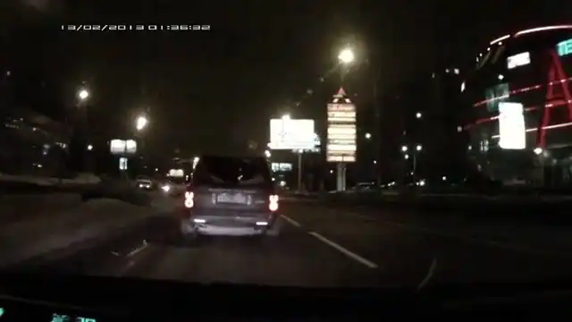 Автор этого видеоролика, записанного на видеорегистратор, утверждает, что спокойно ночью возвращался домой в час ночи, а когда не пропустил моргающий дальним светом Range Rover, двое парней во внедорожнике решили научить его уму-разуму.