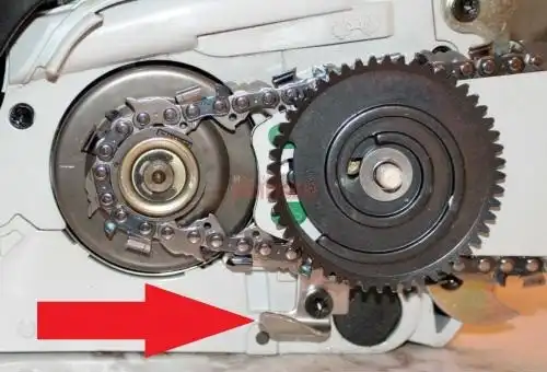 При обрыве цепи на нормальной пиле - цепь останавливается о стопор