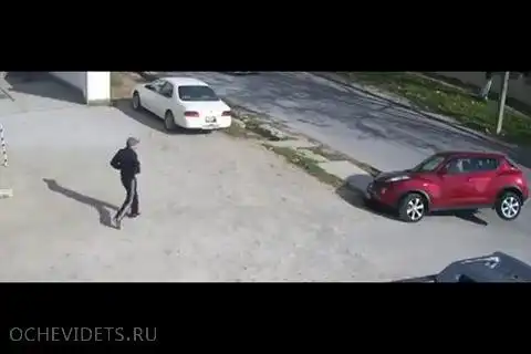 овца на каблах за рулем была, хотела на тротуар заехать парконутся, уперлась в бордюр, давила на газ и вовремя не смогла бросить педаль, по моему даже видео с другого ракурса есть..