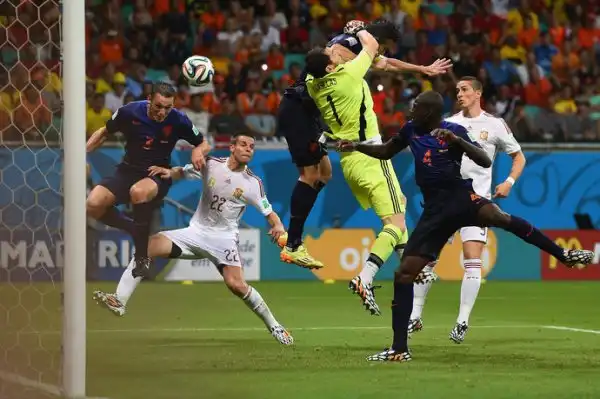 В первом туре чемпионата мира сборная Голландии расправилась с самым грозным соперником группы В - командой Испании. Действующие чемпионы открыли счет в матче, но затем пропустили пять голов (5:1)