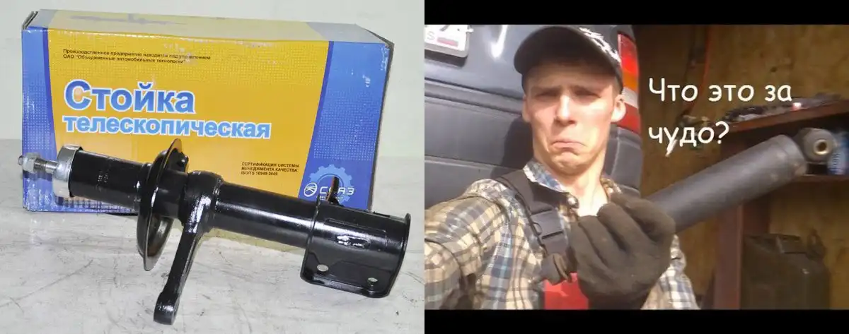 видишь на картинке слева шляпу для пружины - это стойка, а без шляпы - это просто амортизатор! т.е. если вытащить стойку, то и пружину придется вытащить тоже, она сама держаться не будет!