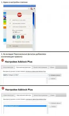в хроме в настройках плагина Adblock Plus добавляем исключающее правило