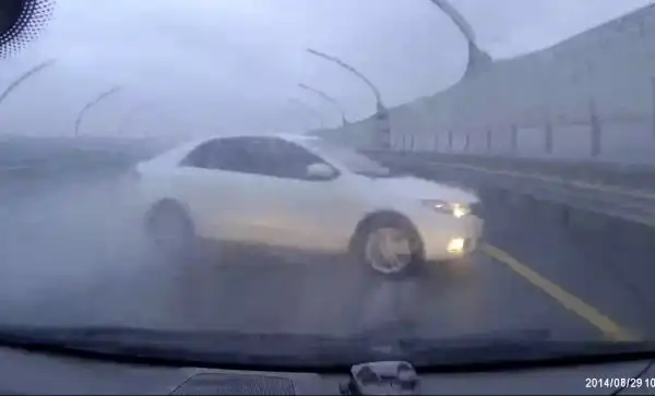 Автор пишет: "Коллеги с организации ехали в командировку, в Великий Новгород, дождь, в колее вода. Их скорость была примерно 140 км/ч. Когда перескочили ограждение, остались без резины