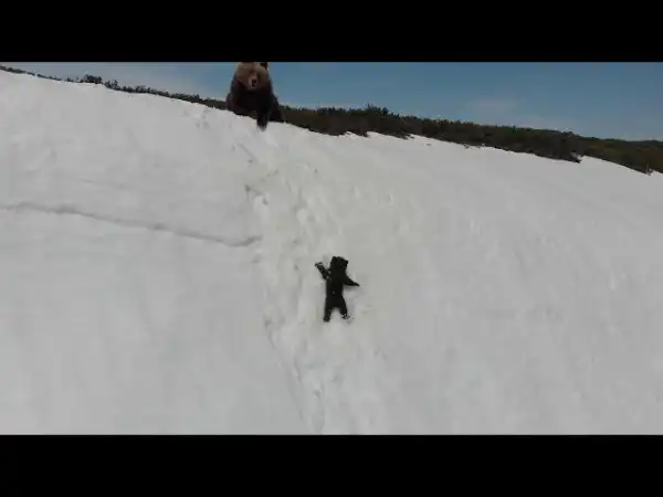 Медвежонок спасается от пумы