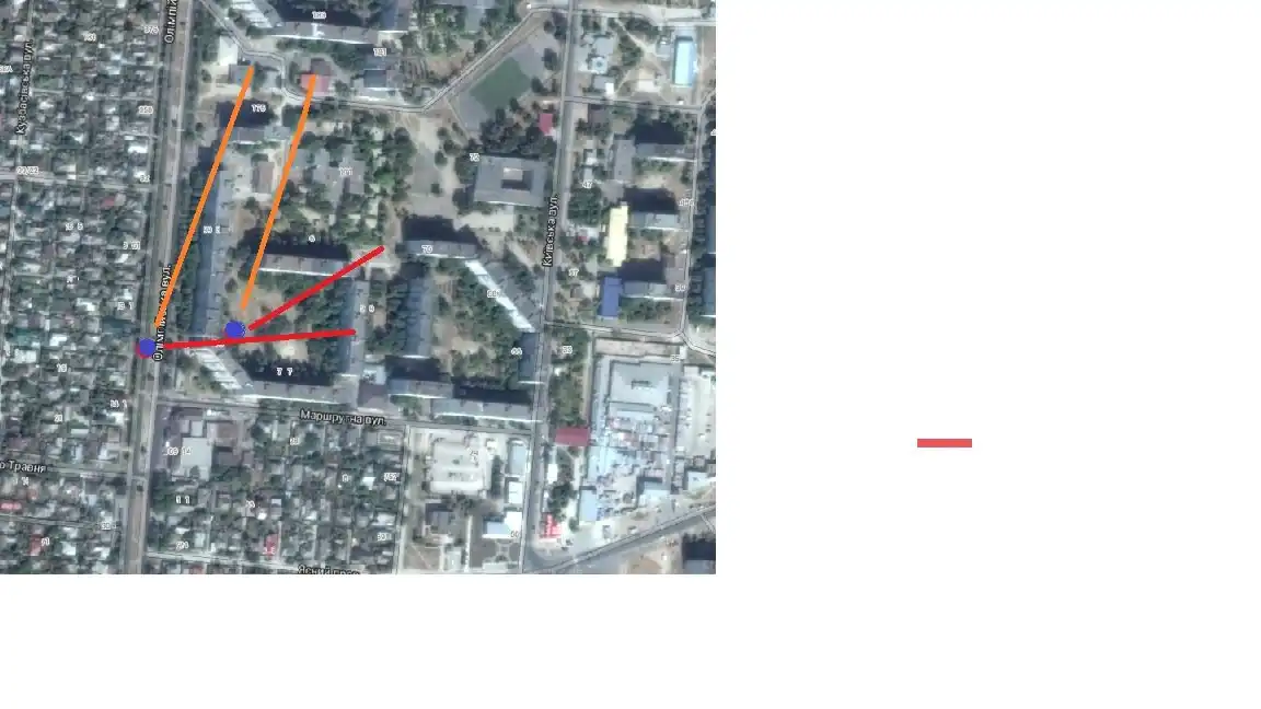 Как бы в видео он линии рисует шедеврально.......Это тоже самое если тебе сказать иди налево,а ты пойдешь прямо....Снаряд на первом отрывке видео был направлен примерно на проём между домами, а он рисует линия вообще хз в какую сторону... На втором отрывке воронка смотрит в сторону соединения двух домов....он же опять проводит линии в ту сторону в какую ему надо...