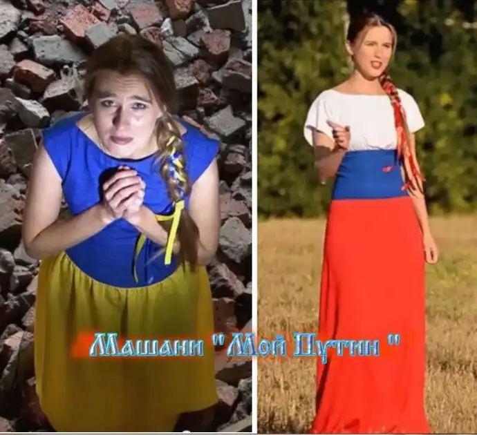 В видеоролике Машани ходит по полю в платье цветов российского флага. Также певица предстает перед зрителями заточенной в кирпичном помещении в платье желтого и синего цветов, олицетворяя, очевидно, Украину. В финале клипа девушку увозит на мотоцикле неизвестный человек в костюме, а "Украина" выбирается из катакомб через пролом в стене.