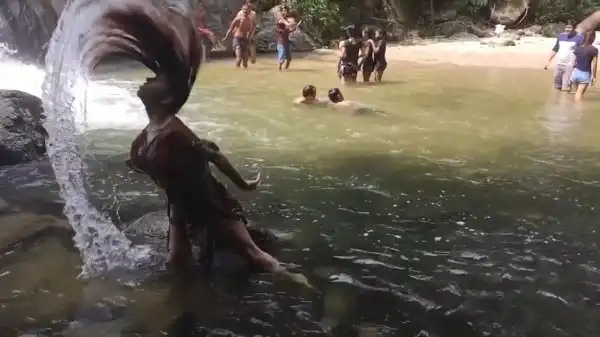 чувиха на заднем плане испугалась - подумала что крокодил напал!