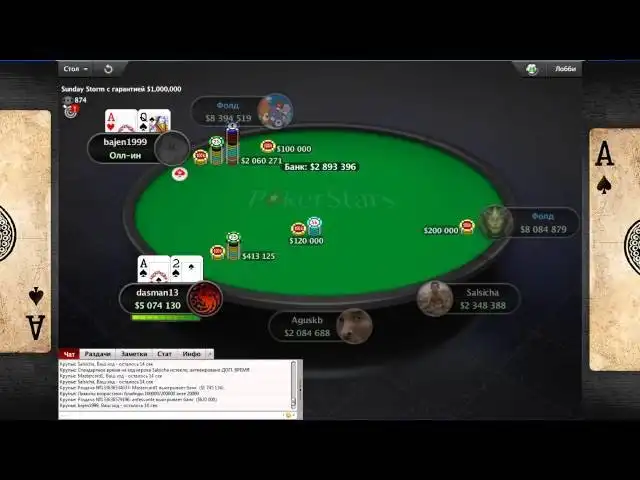 Финальный стол турнира Sunday Warm-Up с открытыми карами. Общий призовой фонд $577,600