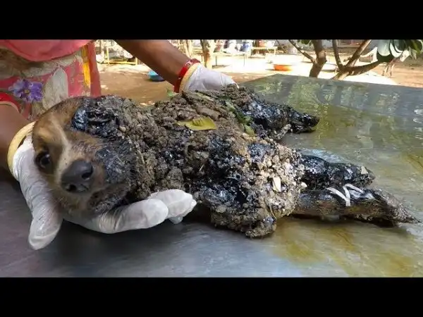 Спасение щенков застрявших в смоле