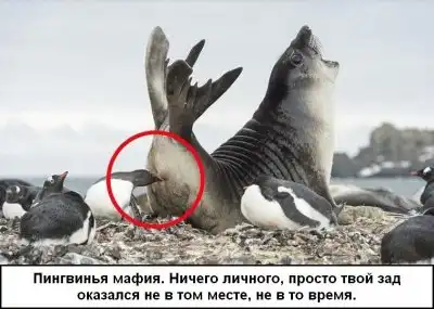 Пингвинёнок исследует человека
