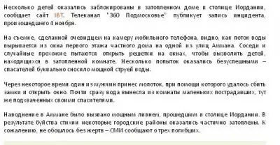 Несколько детей оказались заблокированы в затопленном доме в столице Иордании