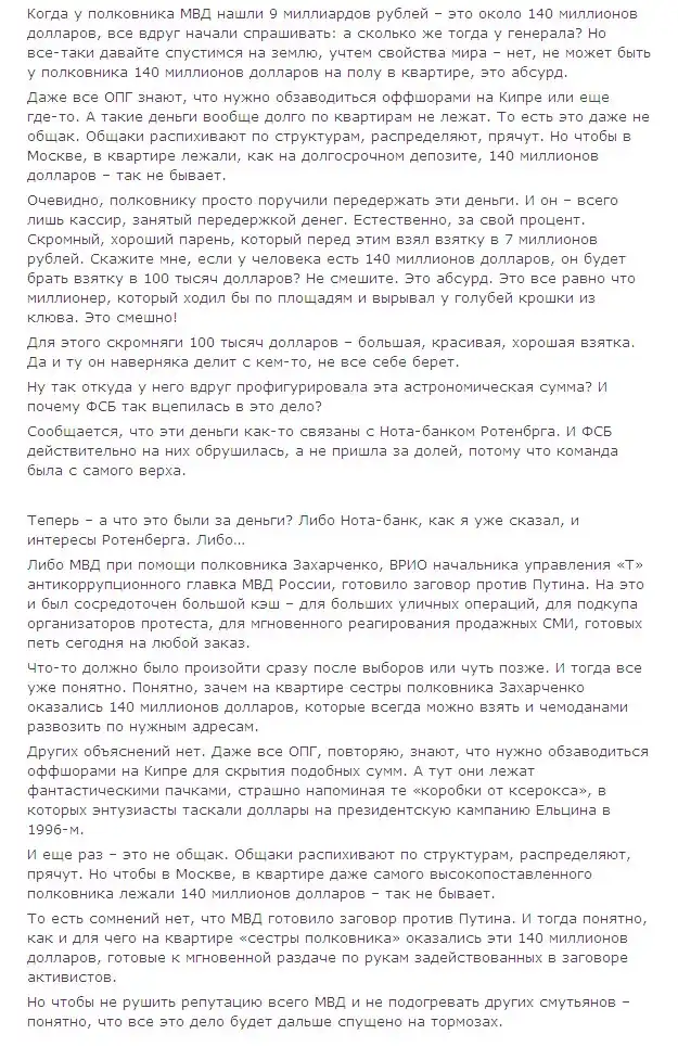 Брехня. Теории заговора сейчас модны, ибо они сильно помогают власти крепить патриотизм среди населения "перед лицом внешнего врага". Все намного банальнее - деньги, как обычно, нажиты непосильным трудом, то есть попросту украдены у вкладчиков или бюджета, а Захарченко действительно простой кассир-кладовщик. И за эти деньги с него кое-кто сурово спросит.