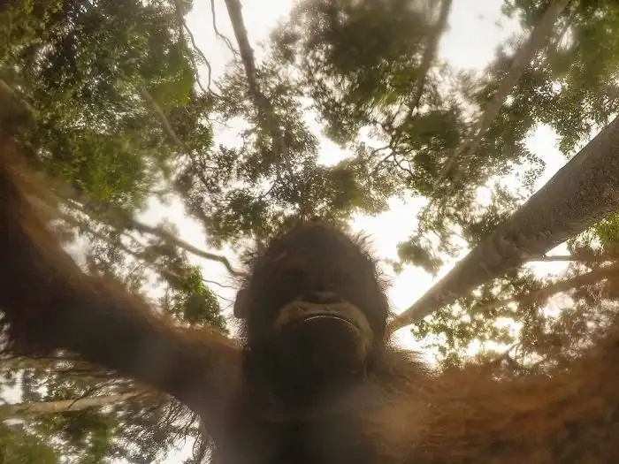 Орангутан нашел в лесу экшн-камеру и