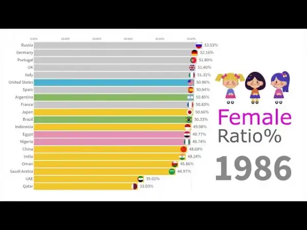 Процент женщин по станам с 1960 по