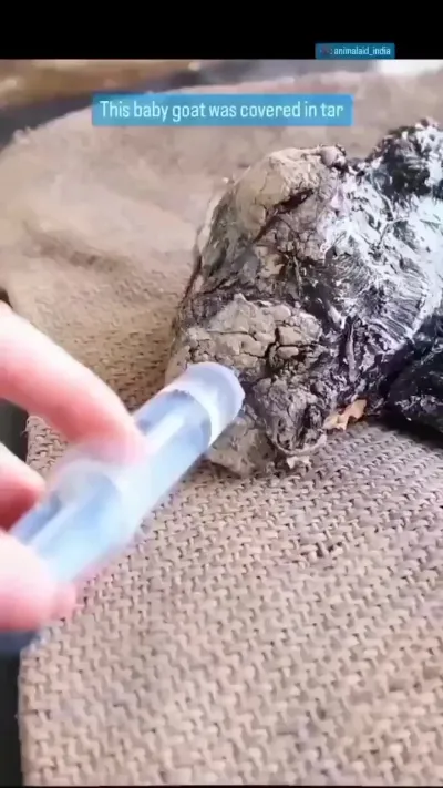 Спасение козленка попавшего в смолу