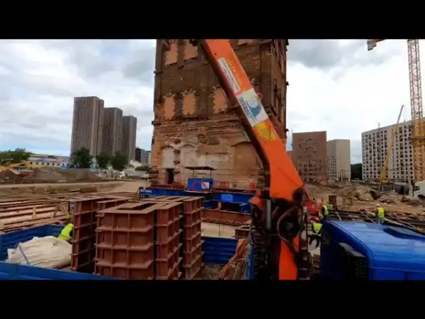 На Складочной улице за Савеловским вокзалом водонапорную башню 19 века аккуратно передвинули на сто с лишним метров, чтобы сохранить в целости и сохранности