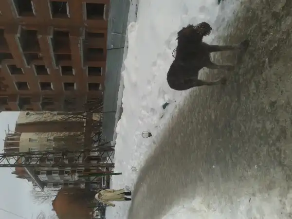 Дама с бойцовской собакой без намордника пыталась прогуляться на спортивной площадке возле дома 2 на площади Победы, где дети играли в футбол.