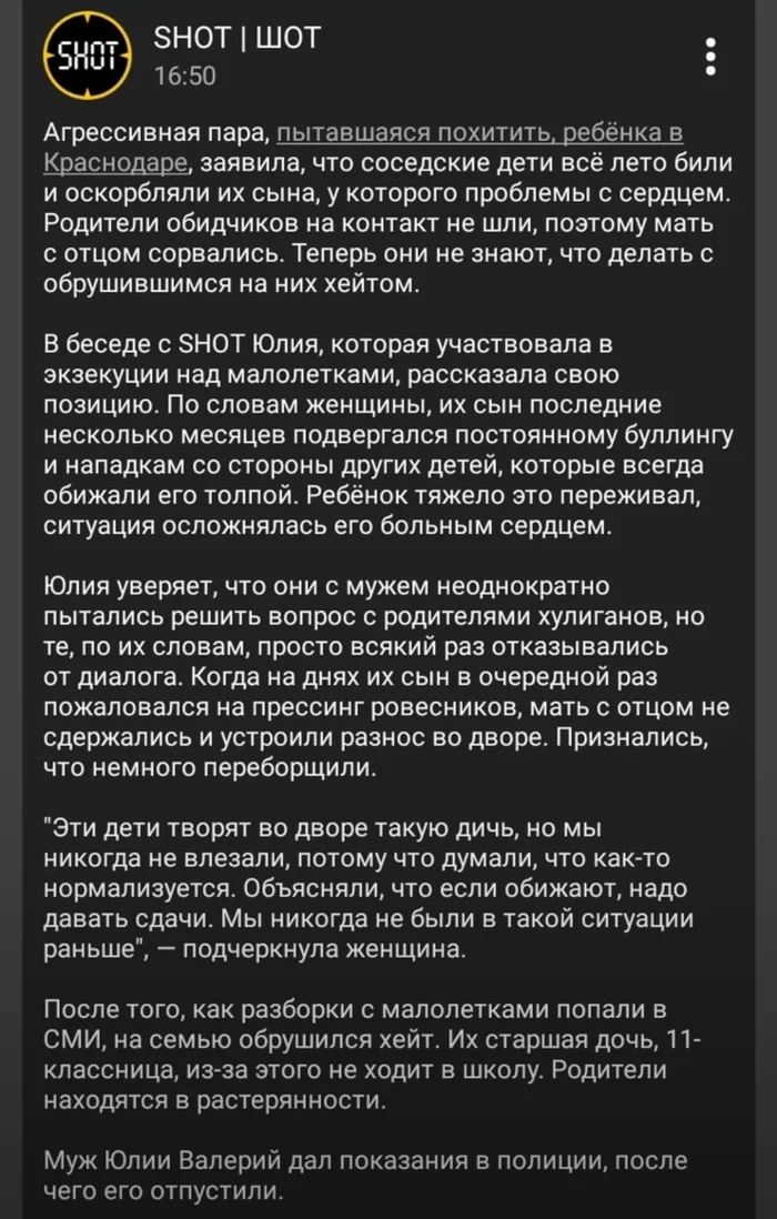 Инцидент в Краснодаре: родители отомстили за обиду сына