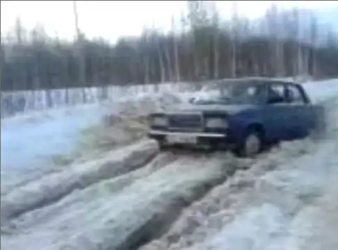 Дорога по зимнику из БелогоЯра. Дорога упала, снег расстаял.
