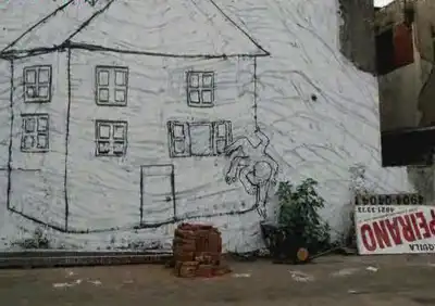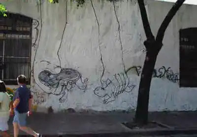 Аргентинский уличный художник Андреа Мартиньони (Andrea Martignoni) с помощью друзей создал шестиминутное, совершенно не укладывающееся в рамки человеческого разума анимационное видео, используя фотоаппарат, белую с чёрной краски и стены Буэнос Айреса и Бадена. Вот это работа, вот это труд.