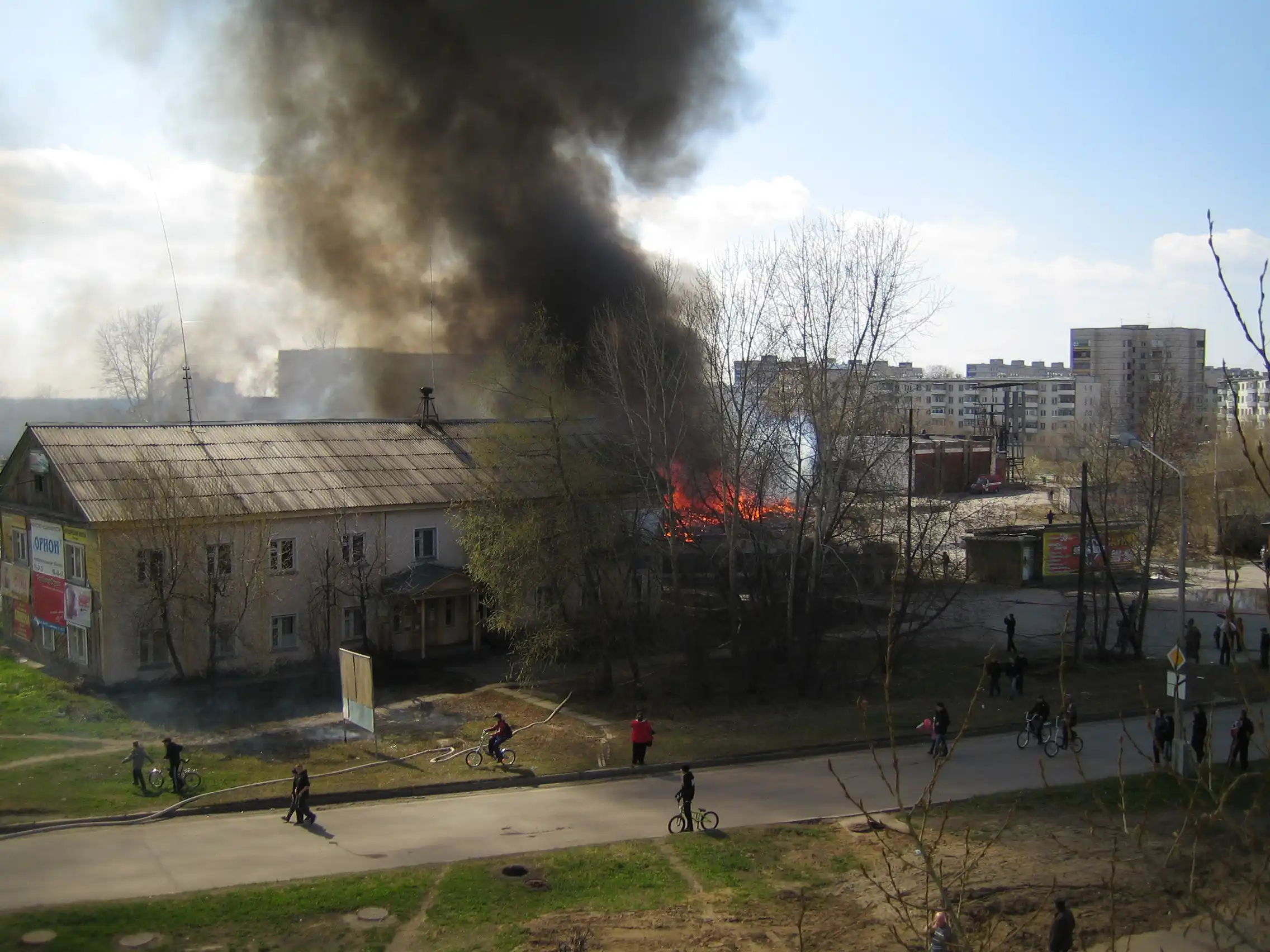 Пожар на территории ДОКа в Северске. Начало примерно 15.20, пожарные заливают последние очаги огня в 15.50