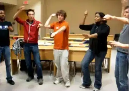 Множество людей учится танцевать "Tunak Tunak Tun"