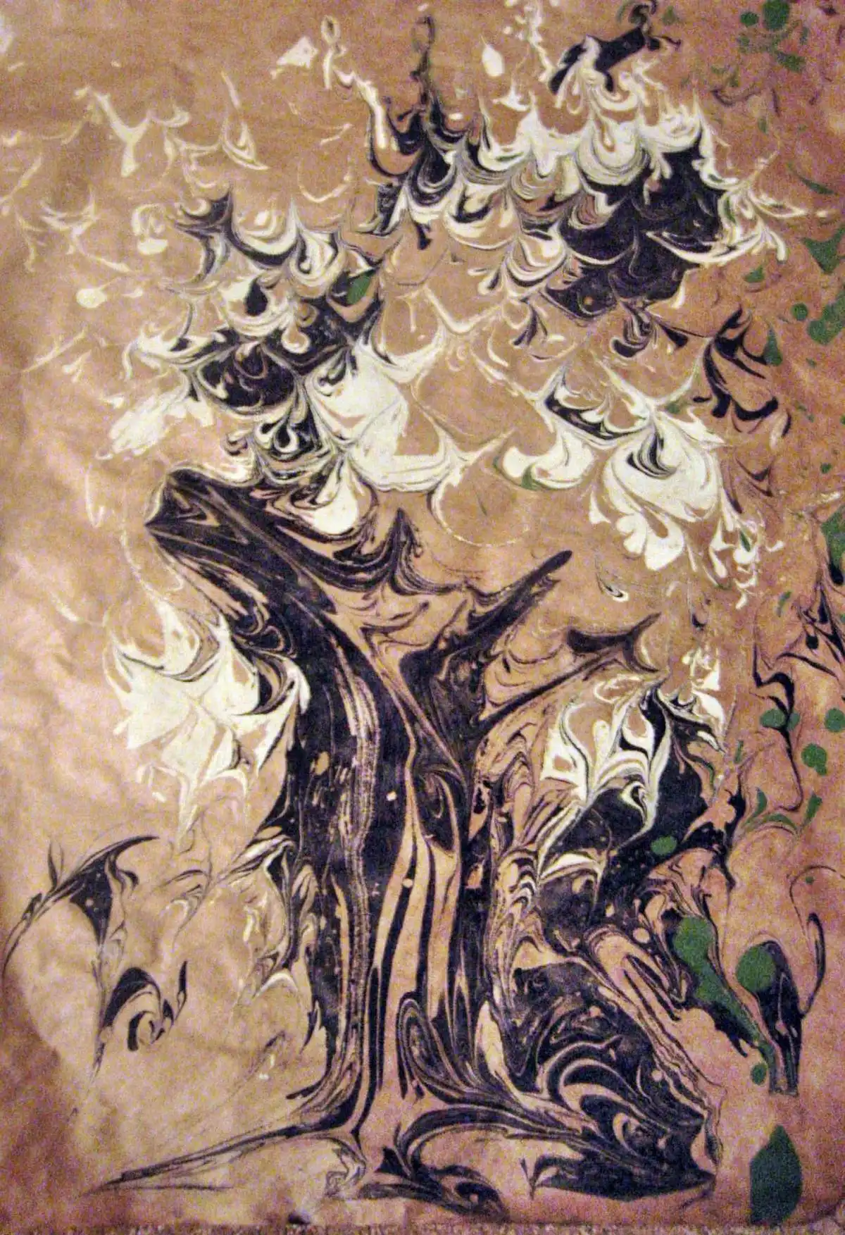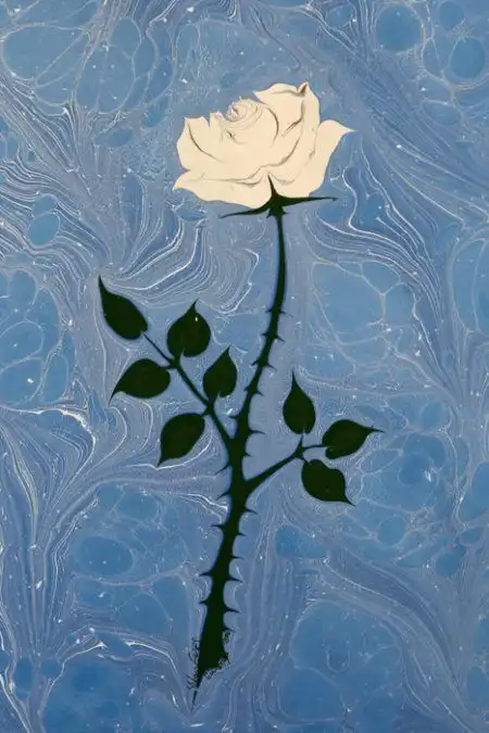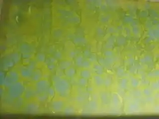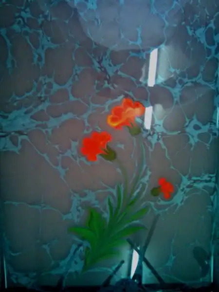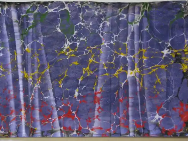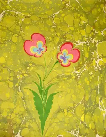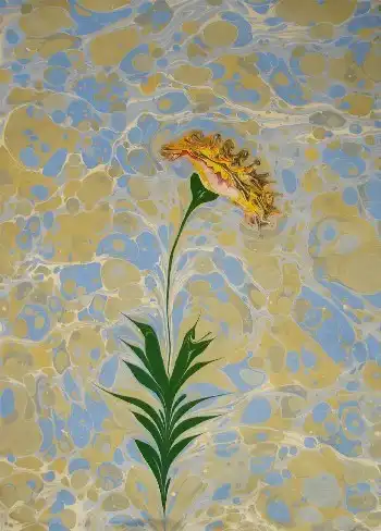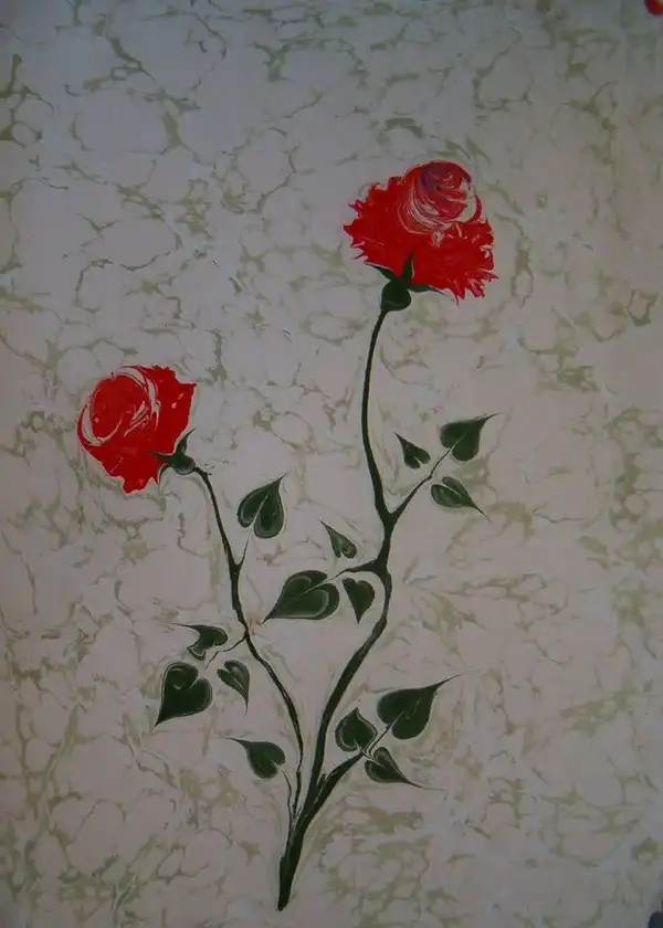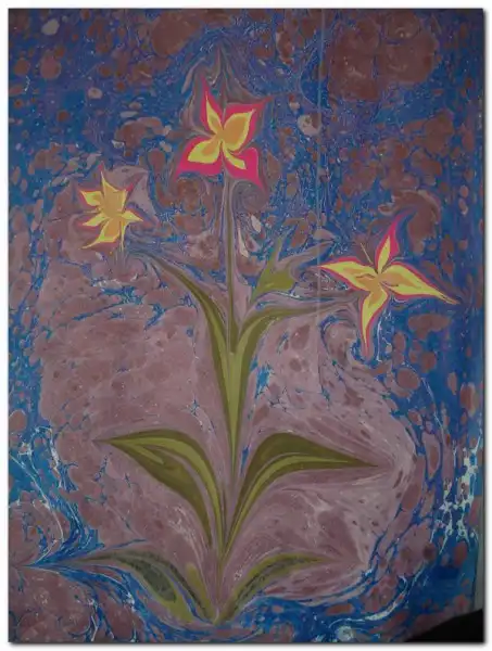 Далее на воду кладется чистый лист бумаги. Через 5-10 секунд его осторожно снимают и оставляют сохнуть. Перенесенное на бумагу произведение и является законченным "эбру".