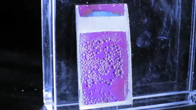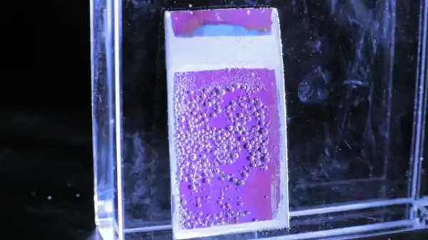 Искусственный лист — кремниевая пластина (солнечная батарея), покрытая с двух сторон различными каталитическими материалами. Устройство не нуждается ни в каких внешних проводах или цепях управления, чтобы работать. «Листок» просто помещается в контейнер с водой, и на него направляется солнечный свет. Реакция не заставляет себя долго ждать — начинают «производиться» пузыри: кислородные пузыри от одной стороны и водородные с другой.