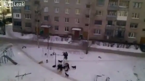 Стая бездомных одичавших собак загнала детей на детскую площадку. Ребята были вынуждены прятаться на высоте.