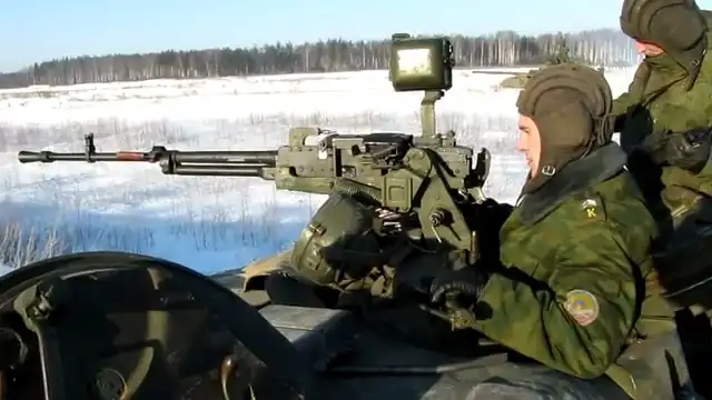 Обучение стрельбе с танкового пулемета НСВТ (танк Т-80). Не специалист, но мне кажется, что хорошо короткие очереди отсекает...
