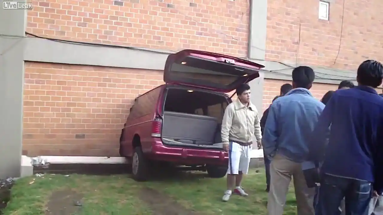 Молодой парень на автомобиле пробил кирпичную стену в здании школы.
