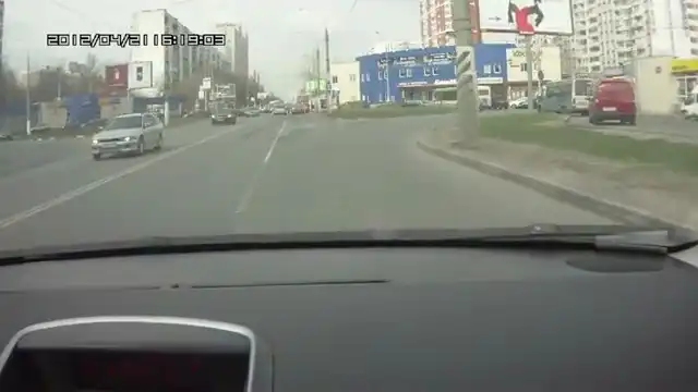 Водитель автомобиля с видеорегистратором заснял на видео то, как на перекрестке, пролетая на красный свет светофора, УАЗик протаранил "Девятку". Нарушитель хотел скрыться с места ДТП, но не тут то было :) Оператор видео решил догнать злостного водителя, создавшего аварию, и заснять на камеру его номерные знаки. Хоть водитель УАЗа в конечном итоге и оторвался от преследования по бездорожью, его государственные номерные знаки (Р167ОА97) были зафиксированы видеорегистратором. Молодец, так держать!