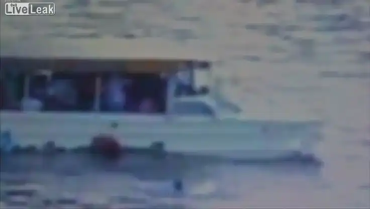 Баржа буквально подмяла под себя прогулочный катер с 38 людьми на борту (37 из них были иностранными студентами из Венгрии). В ролике видно, как двое студентов (девушка и парень) выпрыгивают из катера, в надежде спастись, но в результате они тонут, а те, кто остался на судне - выжили.