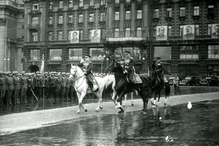 Командовал этим мероприятием маршал СССР Константин Рокоссовский, а принимать Парад Победы Иосиф Сталин поручил маршалу СССР Георгию Жукову. Беспрецедентный, к слову, во всей мировой истории случай, когда Парад Победы принимал не сам Верховный Главнокомандующий (Сталин), а его заместитель (Жуков). Историки объясняют его тем, что Сталин не ощущал себя в этой войне победителем, так как истинная его цель - установление соцлагеря по всей Европе - так и не была достигнута.