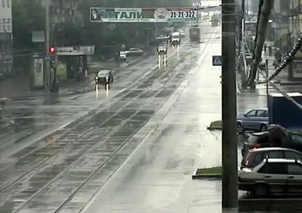 Сегодня утром в самом центре Перми произошла крупная авария. Как рассказали инспекторы ГИБДД, работающие на месте, примерно в 11 часов у трамвая № 8, который шел по улице Борчанинова, отказали тормоза. На перекрестке с улицей Екатерининской он столкнулся с пассажирским автобусом. От удара автобус отбросило с дороги и он едва не врезался в церковь. Трамвай поехал дальше и на перекрестке с улицей Ленина столкнулся с джипом и сошел с рельсов.