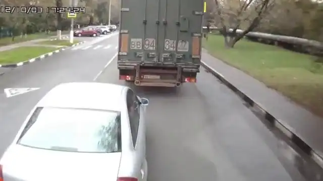 Ну что тут еще добавить? Водитель грузовика - просто красавчик, проучил очередного недоумка, который думал, что самый крутой на дороге ;)