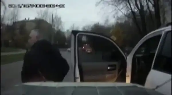 Водитель Тойоты вышел из машины, пытаясь открыть водительскую дверь, стучал по стеклу.