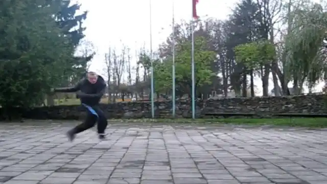 Парень настолько хорошо отточил технику этого танца, что складывается такое ощущение, будто ноги вылетают сами собой.